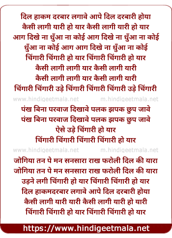 Lyrics of Chingaari Chingaari Ho Yaar - दिल हाकम दरबार लगावे आपे दिल दरबारी होया