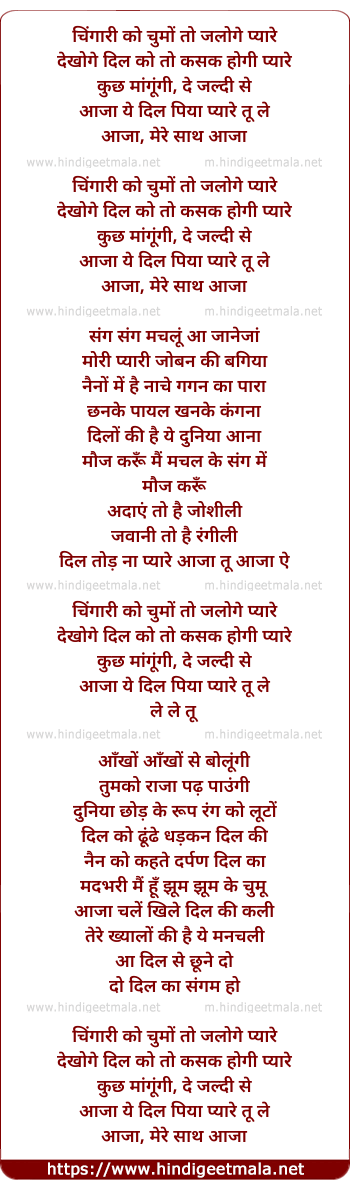 Lyrics of Chingari Ko Chumo To Jaloge Pyare - चिंगारी को चुमों तो जलोगे प्यारे