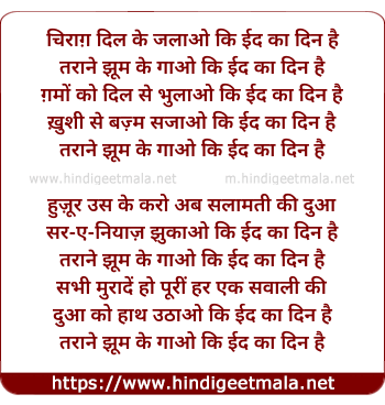 Lyrics of Chiraag Dil Ke Jalaao Ki Iid Kaa Din Hai - चिराग़ दिल के जलाओ कि ईद का दिन है
