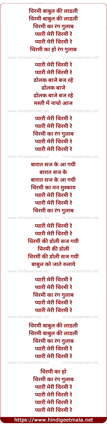 Lyrics of Chirmi Babul Ki Ladli (Part-1)