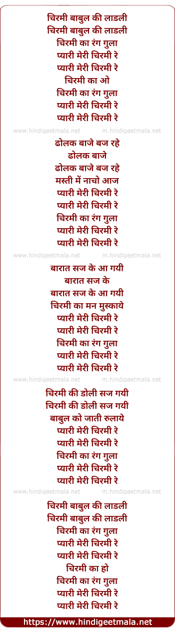 lyrics of song Chirmi Babul Ki Ladli (Part-2)