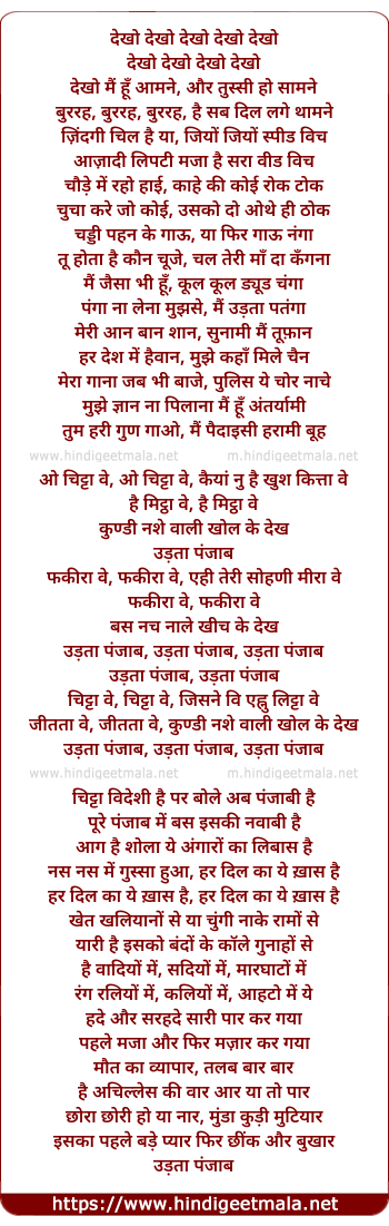 Lyrics of Chitta Ve - चिट्टा वे