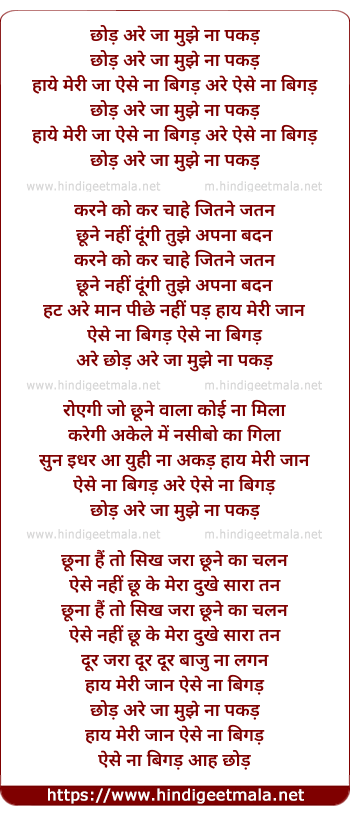 Lyrics of Chod Are Ja Mujhe Na Pakad - छोड़ अरे जा मुझे ना पकड़