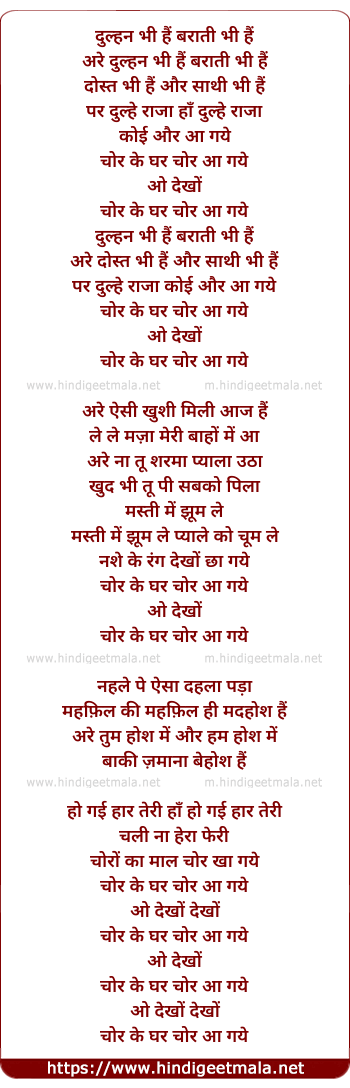 Lyrics of Chor Ke Ghar Chor Aa Gaye - चोर के घर चोर आ गये