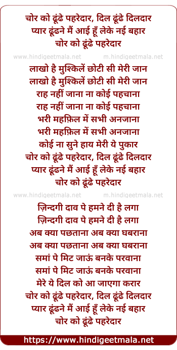 Lyrics of Chor Ko Dhundhe Pehredar - चोर को ढूंढे पहरेदार