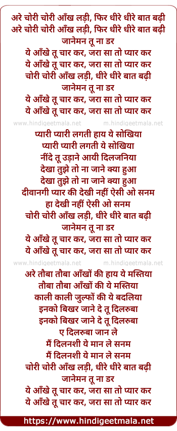 Lyrics of Chori Chori Aankh Ladi - चोरी चोरी आँख लड़ी