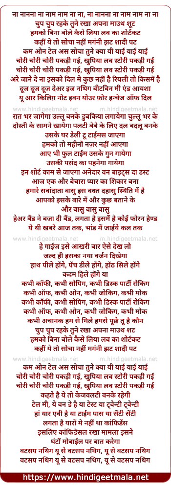 Lyrics of Chori Chori Pakadi Gayi, Khupiya Love Story Pakadi Gayi - चोरी चोरी पकड़ी गई, खुपिया लव स्टोरी पकड़ी गई