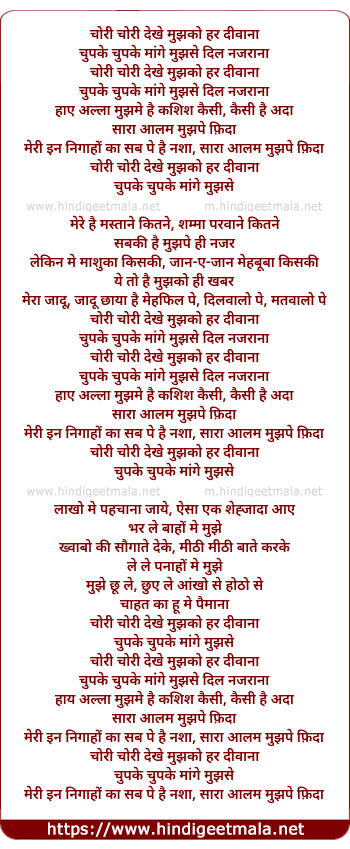 Lyrics of Chori Chori Dekhe Mujhko Har Deewaana - चोरी चोरी देखे मुझको हर दीवाना