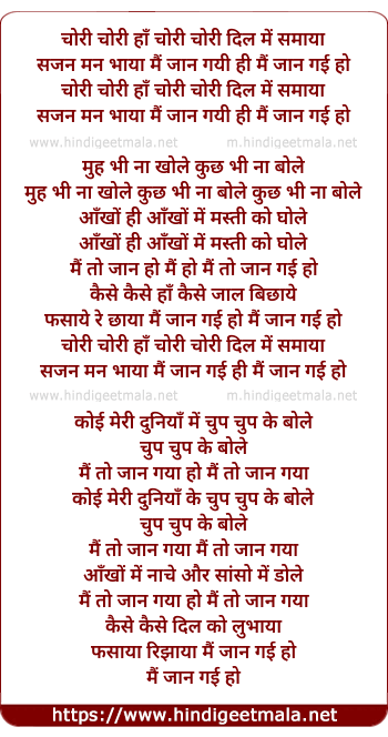 Lyrics of Chori Chori Ha Chori Chori Dil Me Samaya - चोरी चोरी हाँ चोरी चोरी दिल में समाया