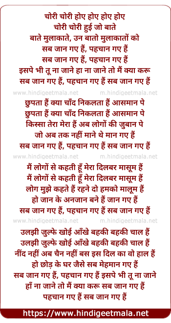 Lyrics of Chori Chori Hoye Hoye - चोरी चोरी होए होए