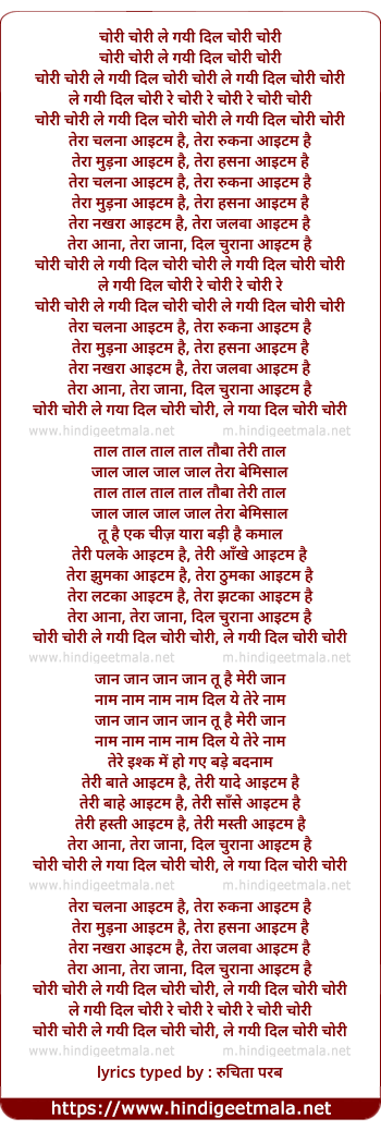chori chori le gaya dil chori chori, le gaya dil chori chori