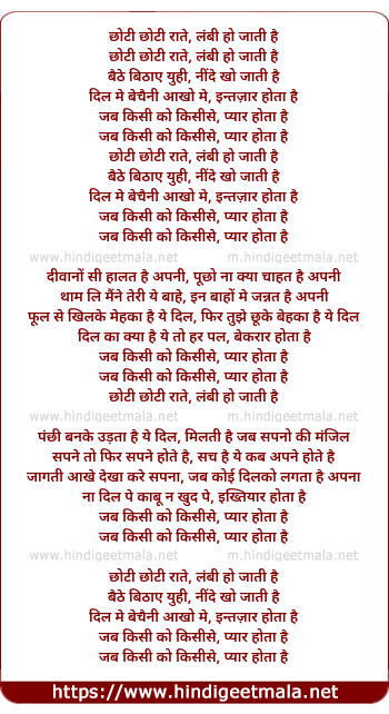 Lyrics of Choti Choti Raate Lambi Ho Jati Hai - छोटी छोटी राते, लंबी हो जाती है