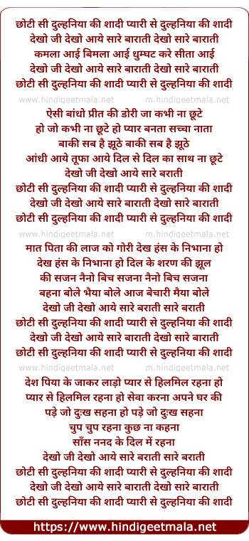 Lyrics of Choti Si Dulhania Ke Shadhi - छोटी सी दुल्हनिया की शादी