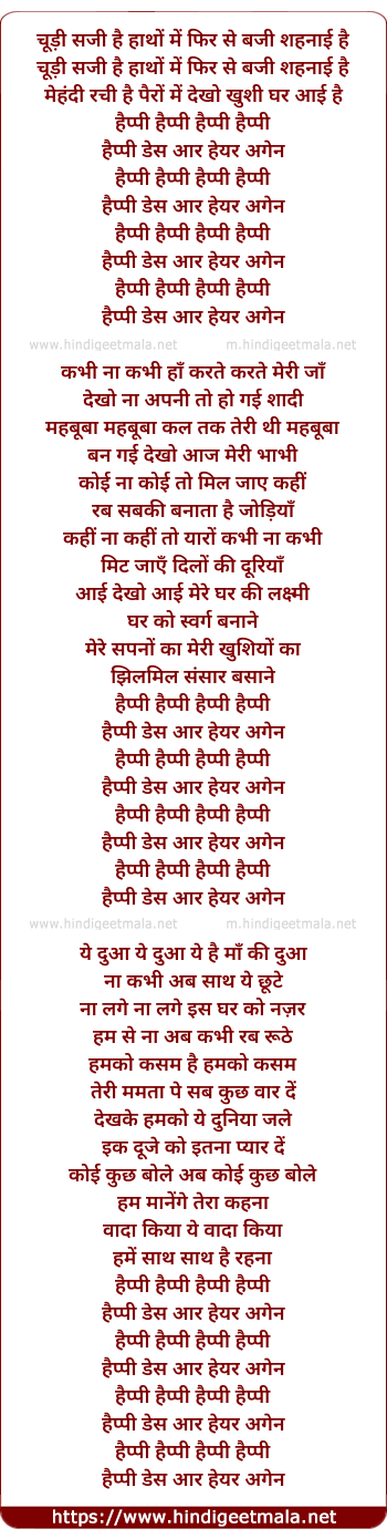 Lyrics of Chudi Saji Hai Hatho Me, Happy Days Are Here Again - चूड़ी सजी है हाथों में, हैप्पी डेज आर हेयर अगेन