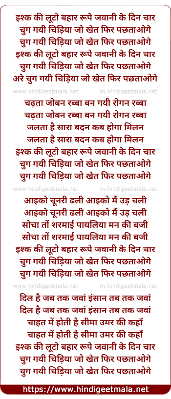 Lyrics of Chug Gayi Chidiya Jo Khet - चुग गयी चिड़िया जो खेत