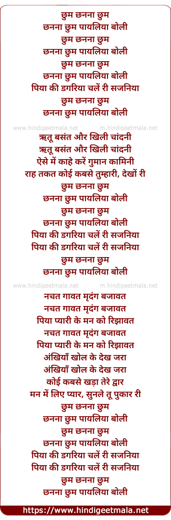 Lyrics of Chum Chanana Chum (Jhoom Ke Baje Payal) - छुम छनना छुम