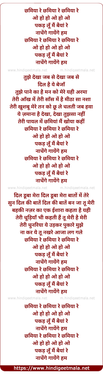 Lyrics of Chummiyaa - छमिया रे छमिया रे छमिया रे