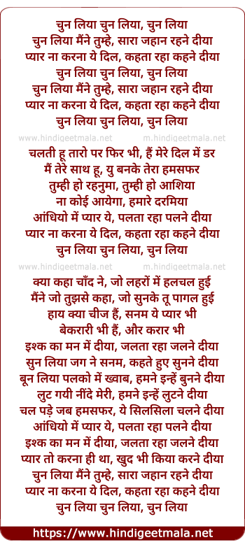 Lyrics of Chun Liya Maine Tumhe Chun Liya - चुन लिया चुन लिया