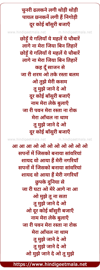Lyrics of Chunari Dhalakne Lagi Thodi Thodi - चुनरी ढलकने लगी थोड़ी थोड़ी