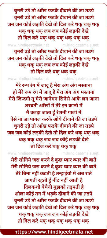 Lyrics of Chunri Ude To Ankh - चुनरी उड़े तो आँख