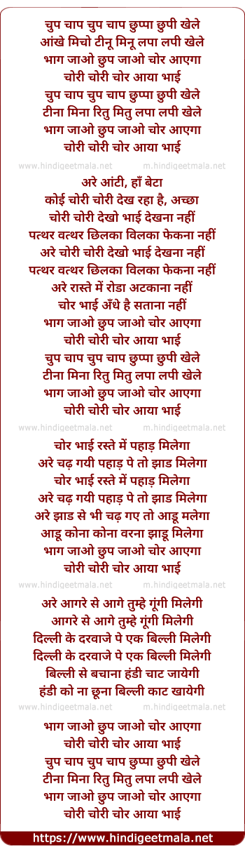 Lyrics of Chup Chup Chuppa Chupi - चुप चाप छुप्पा छुपी