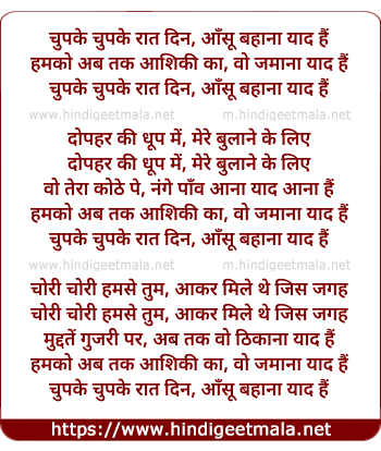 Lyrics of Chupke Chupke - चुपके चुपके रात दिन, आँसू बहाना याद हैं