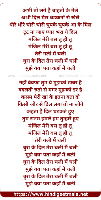 Lyrics of Chura Ke Dil - अभी तो लगे है चाहतो के मेले