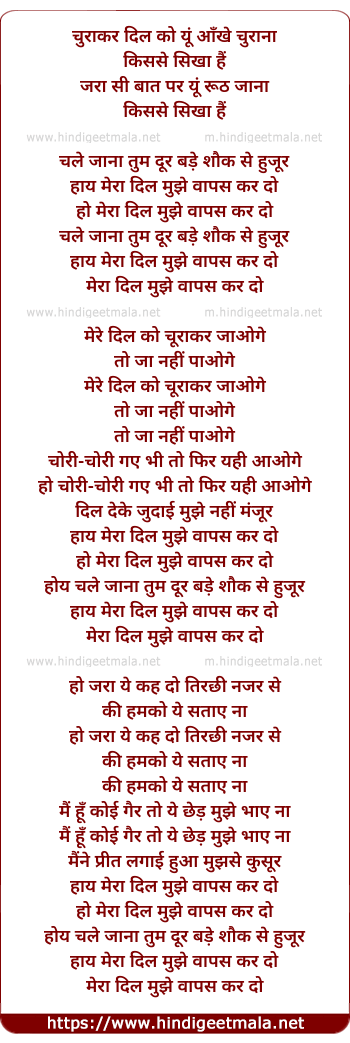 Lyrics of Churakar Dil Ko Yun, Aankhe Churana Kisse Sikha Hai - चुराकर दिल को यूँ, आँखे चुराना किससे सिखा हैं