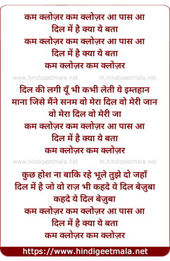 Lyrics of Come Closer Come Closer Aa Paas Aa - कम क्लोज़र कम क्लोज़र आ पास आ