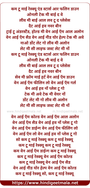 Poetic Translation - Lyrics of Come To My Rescue - कम टू माई रेस्क्यू
