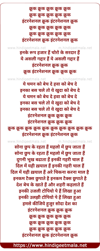 Lyrics of Crook Crook International Crook - क्रूक क्रूक इंटरनेशनल क्रूक