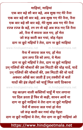 Lyrics of Daag Na Chhoote Mahiya - दाग ना छुटे माहियाँ