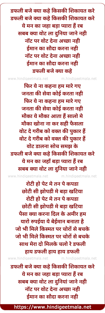 Lyrics of Dafli Baje Kya Kahe Kiski Sikayat Kare - डफली बजे क्या कहे किसकी शिकायत करे