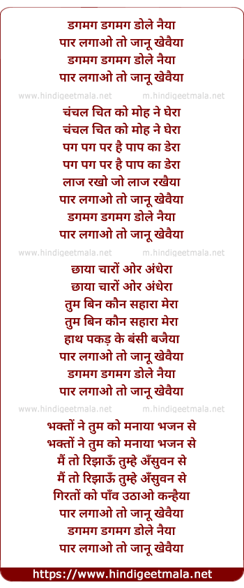 Lyrics of Dagamag Dagamag Dole Nayyaa - डगमग डगमग डोले नैया