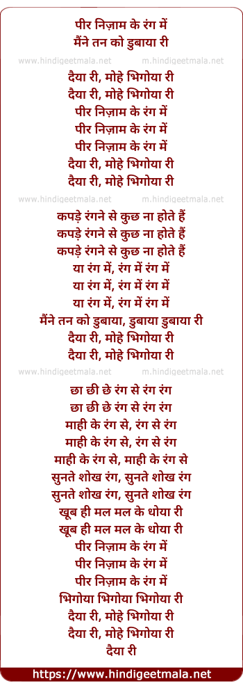 Lyrics of Daiyya Ri - पीर निज़ाम के रंग में