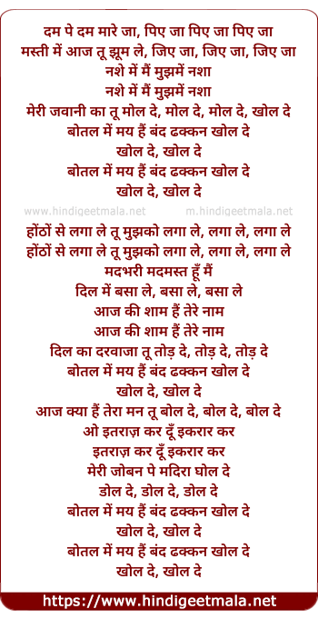 dam pe dam maare ja, piye ja piye ja piye ja
