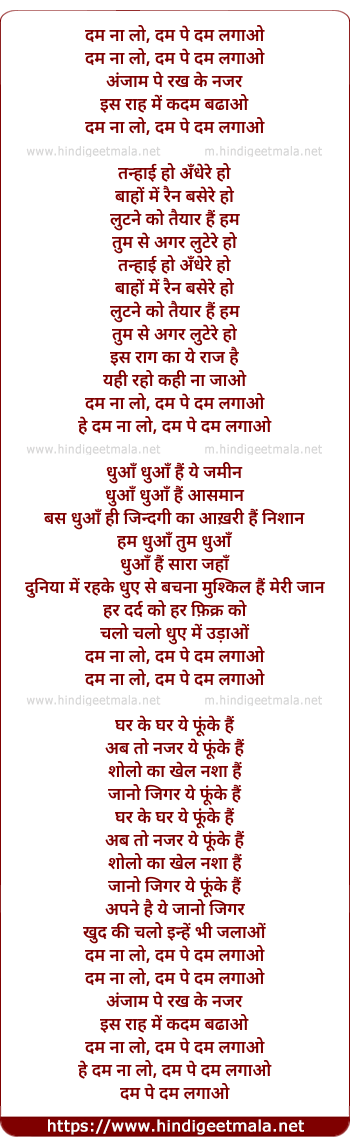 Lyrics of Dam Pe Dam Lagao - दम पे दम लगाओ