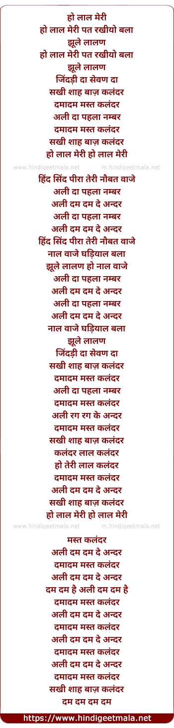 Lyrics of Dama Dum Mast - हो लाल मेरी