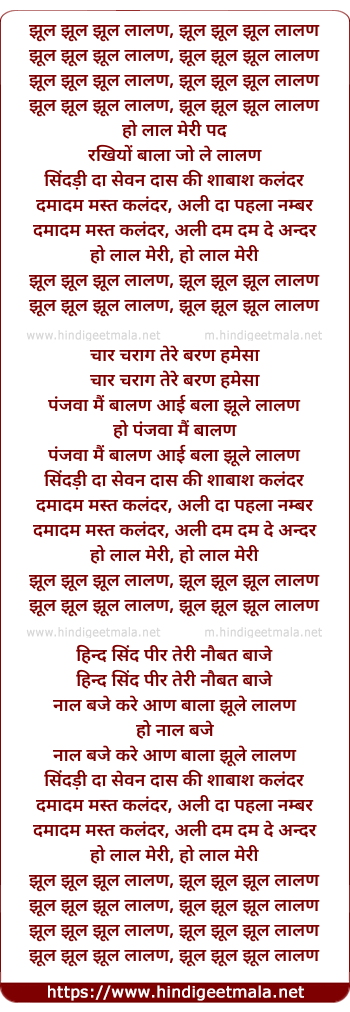 Lyrics of Damadam Mast Calandar - झूल झूल झूल लालण, झूल झूल झूल लालण