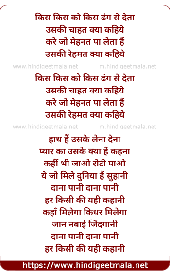 Lyrics of Dana Paani (Part- 2) - किस किस को किस ढंग से देता