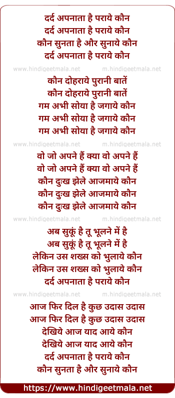 Dard Apnaataa Hai Paraaye Kaun - दर्द अपनाता है पराये कौन
