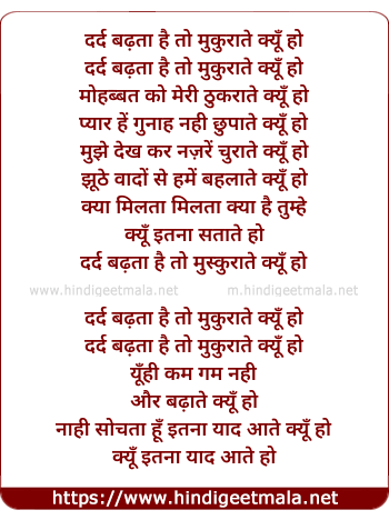Lyrics of Dard Badhta Hai To (Remix) - दर्द बढ़ता है तो मुकुराते क्यूँ हो