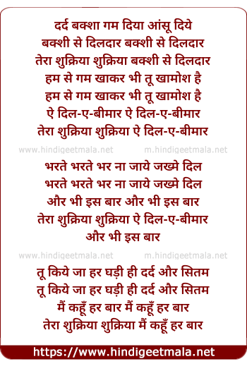 Lyrics of Dard Baksha Gham Diya - दर्द बक्शा गम दिया आंसू दिये