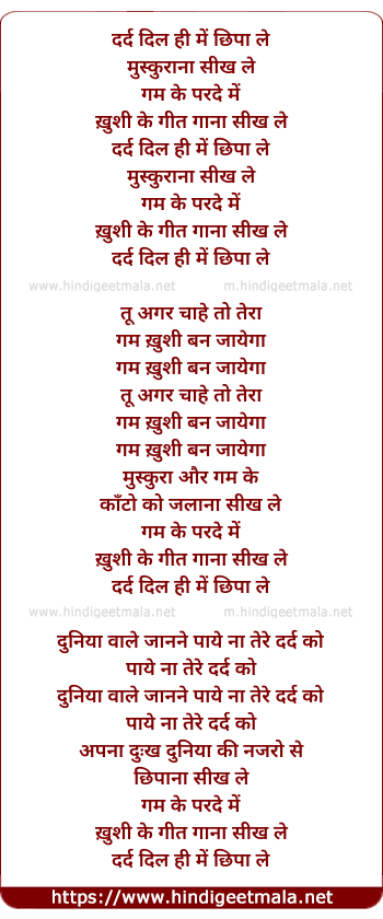 Lyrics of Dard Dil Hi Me Chupa Le - दर्द दिल ही में छिपा ले
