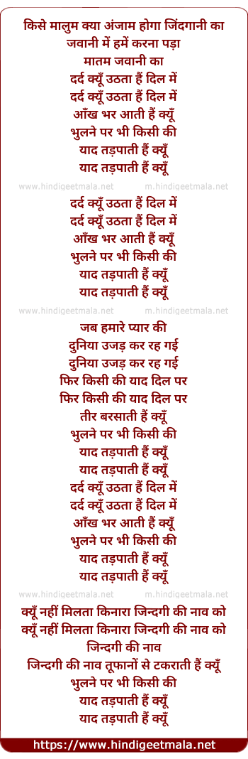 Lyrics of Dard Kyu Uthataa Dil Me - दर्द क्यों उठता दिल में