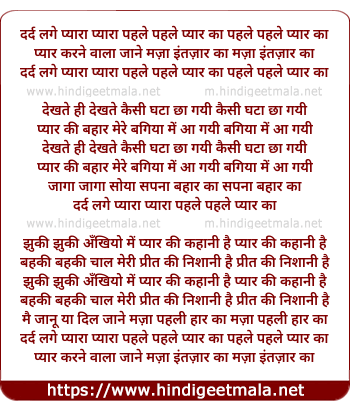 Lyrics of Dard Lage Pyara Pyara Pehle Pehle Pyar Ka - दर्द लगे प्यारा प्यारा पहले पहले प्यार का