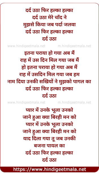 Lyrics of Dard Utha Phir Halka Halka - दर्द उठा फिर हल्का हल्का