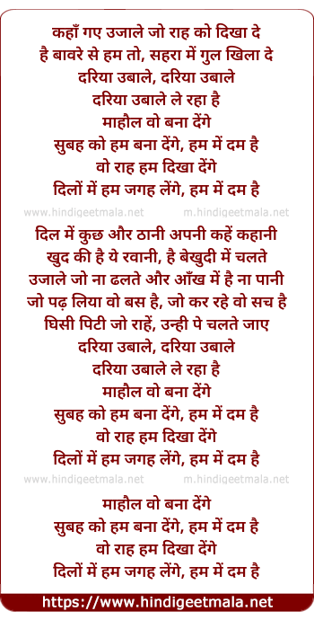 Lyrics of Dariya Ubale Le Raha Hai - दरिया उबाले ले रहा है