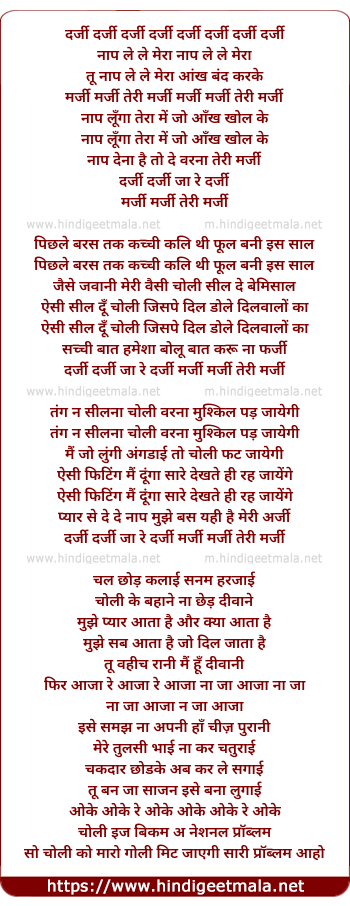 Poetic Translation - Lyrics of Darji Darji - दर्जी दर्जी