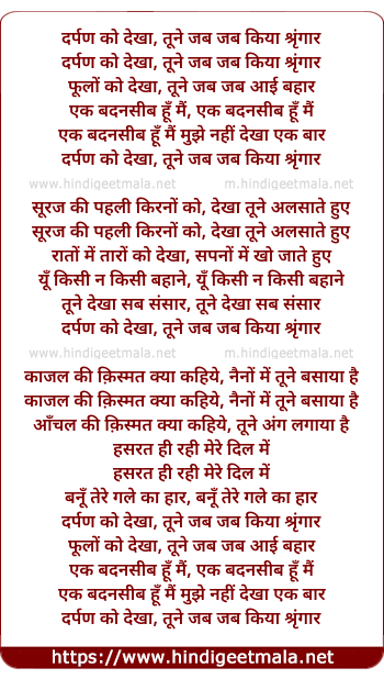 Lyrics of Darpan Ko Dekhaa Tune Jab Jab Kiyaa Shrringaar - दर्पण को देखा, तूने जब जब किया श्रृंगार